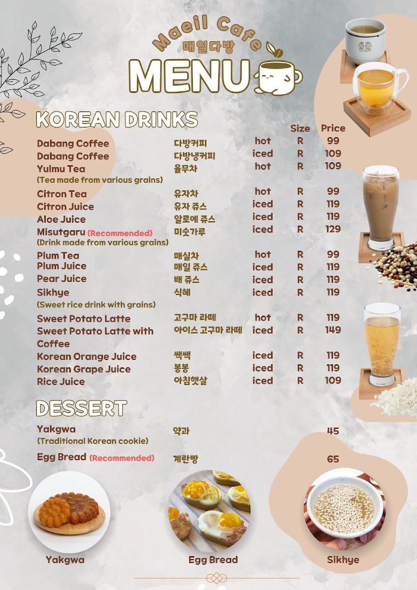 Maeil Cafe, 매일다방 Menu